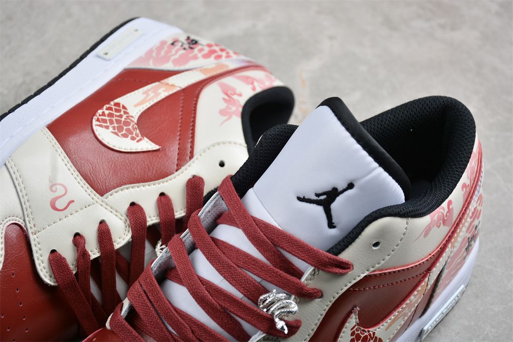 Crafted to honor the Lunar New Year, this AJ 1 Low edition channels the spirit of the Snake — a symbol of wisdom, transformation, and renewal in Eastern culture.
