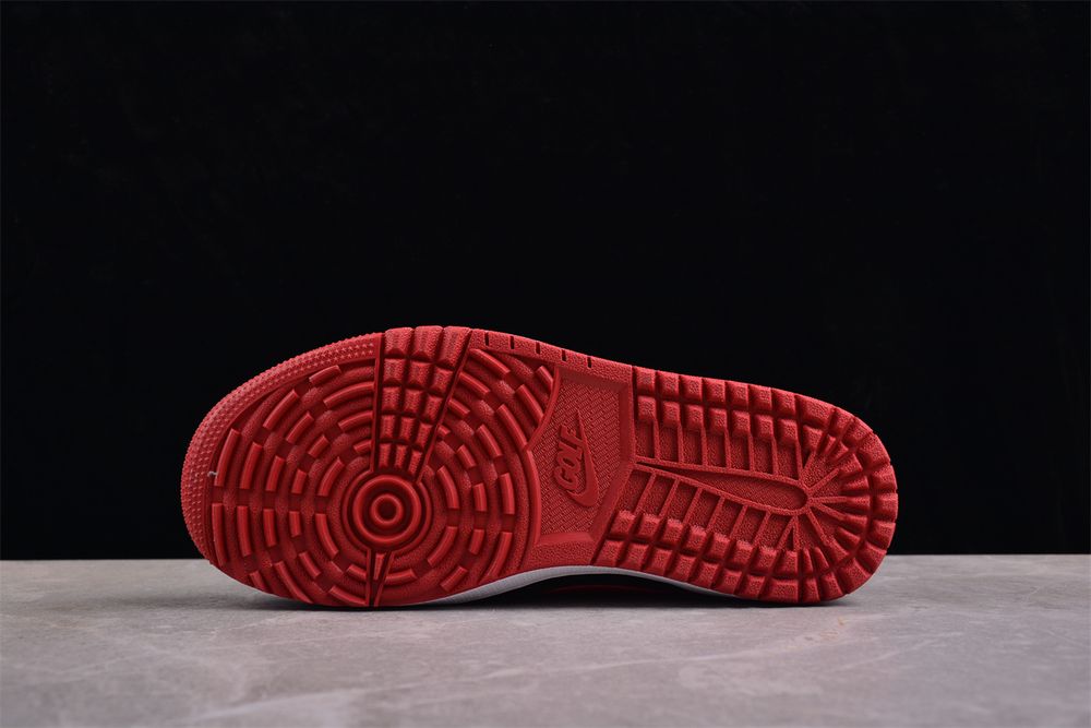 Underfoot, encapsulated Air cushioning is housed within a durable rubber cupsole, providing responsive comfort throughout your swing. An integrated traction rubber outsole ensures reliable grip across varied surfaces, allowing AJ 1 Mule Golf 'Bred' FJ1214-001 to transition seamlessly from fairway to clubhouse.