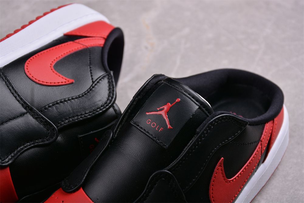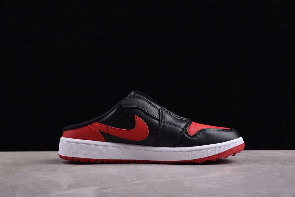 Blending heritage style with modern convenience, AJ 1 Mule Golf 'Bred' FJ1214-001 delivers easy slip-on access without compromising structure or stability. The open-back construction enhances breathability and comfort, making it ideal for quick rounds, range sessions, or casual off-course wear.